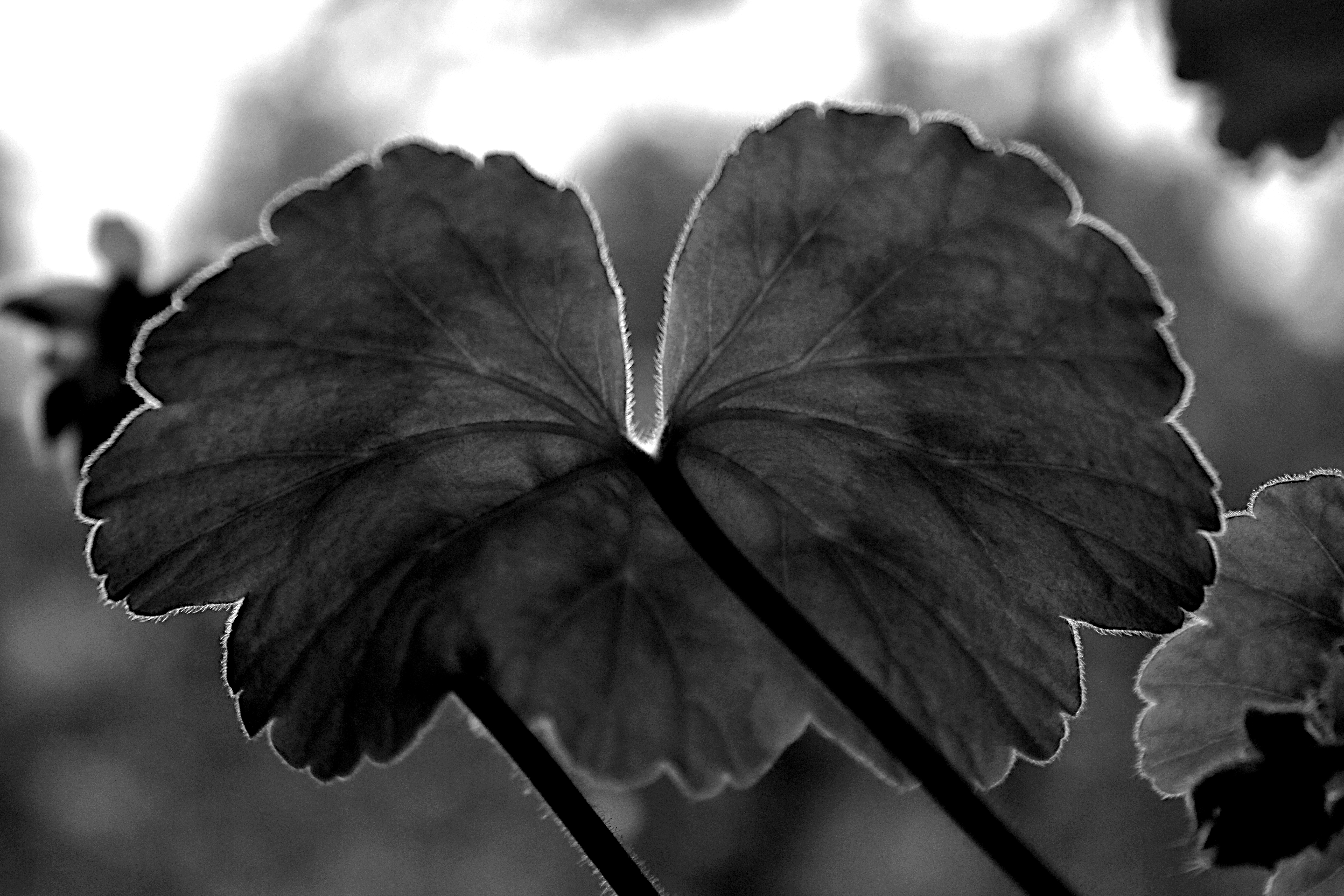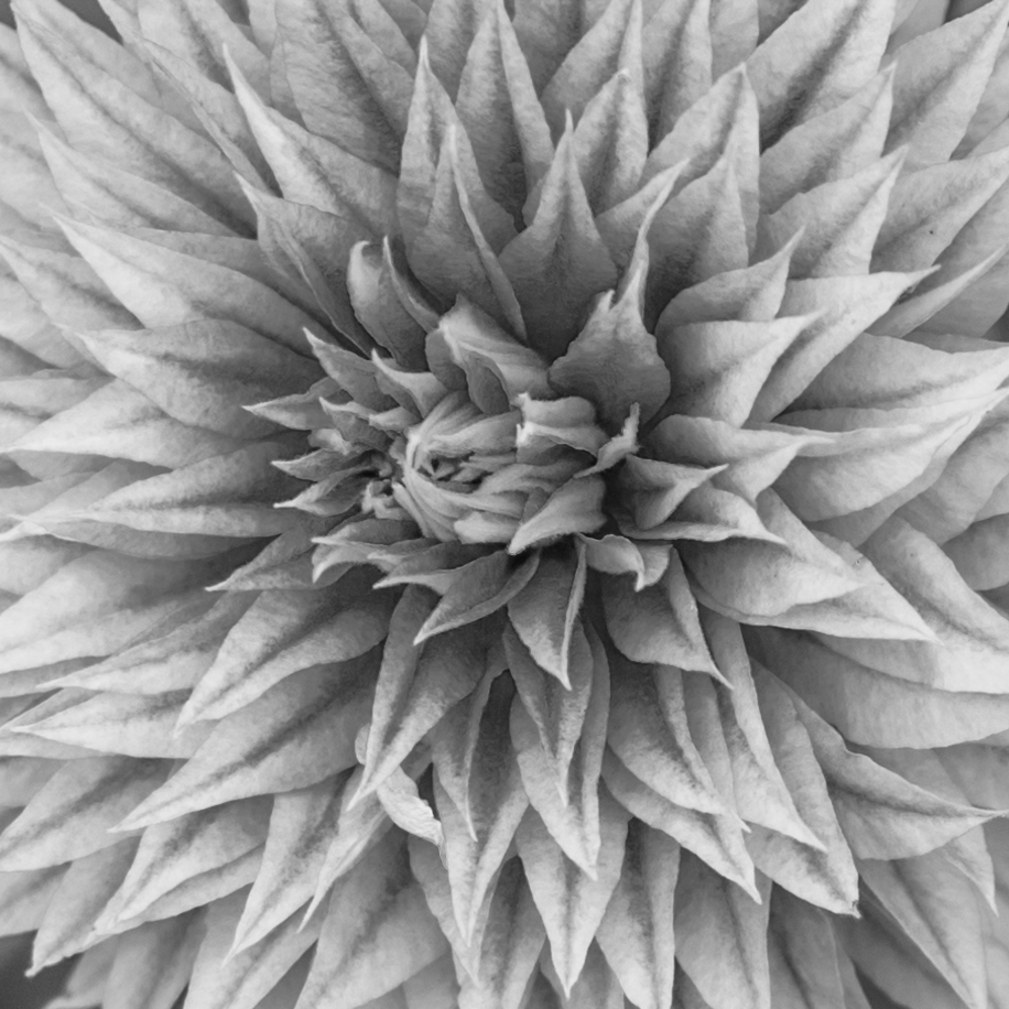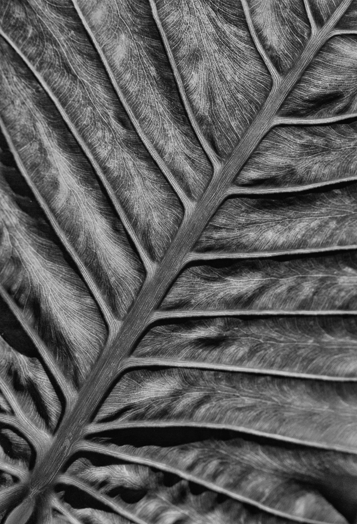 Flowers, leaves, trees, bushes, insects, etc, are most often photographed for their colour …. this time try B/W for tones and textures. -