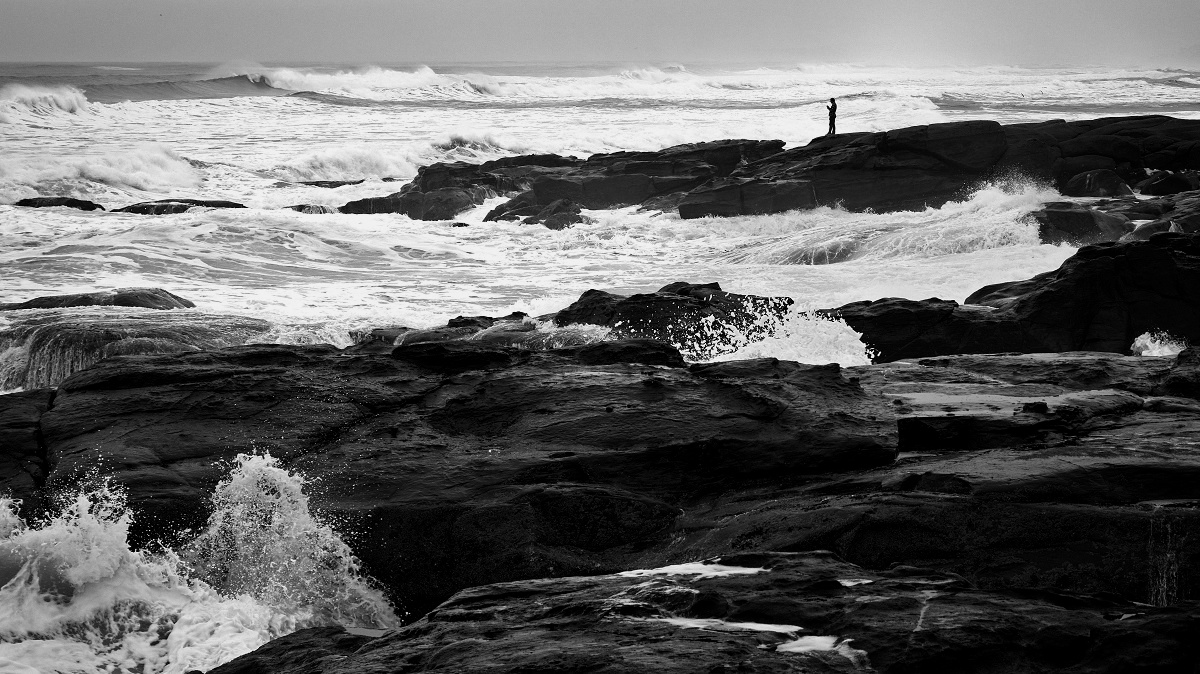 I really like this Dave. Great focus throughout the image and perfect placement of the person. I also really love the contrast between the rocks and the frothy white water. I can feel the movement of the water and hear the ocean. Super!