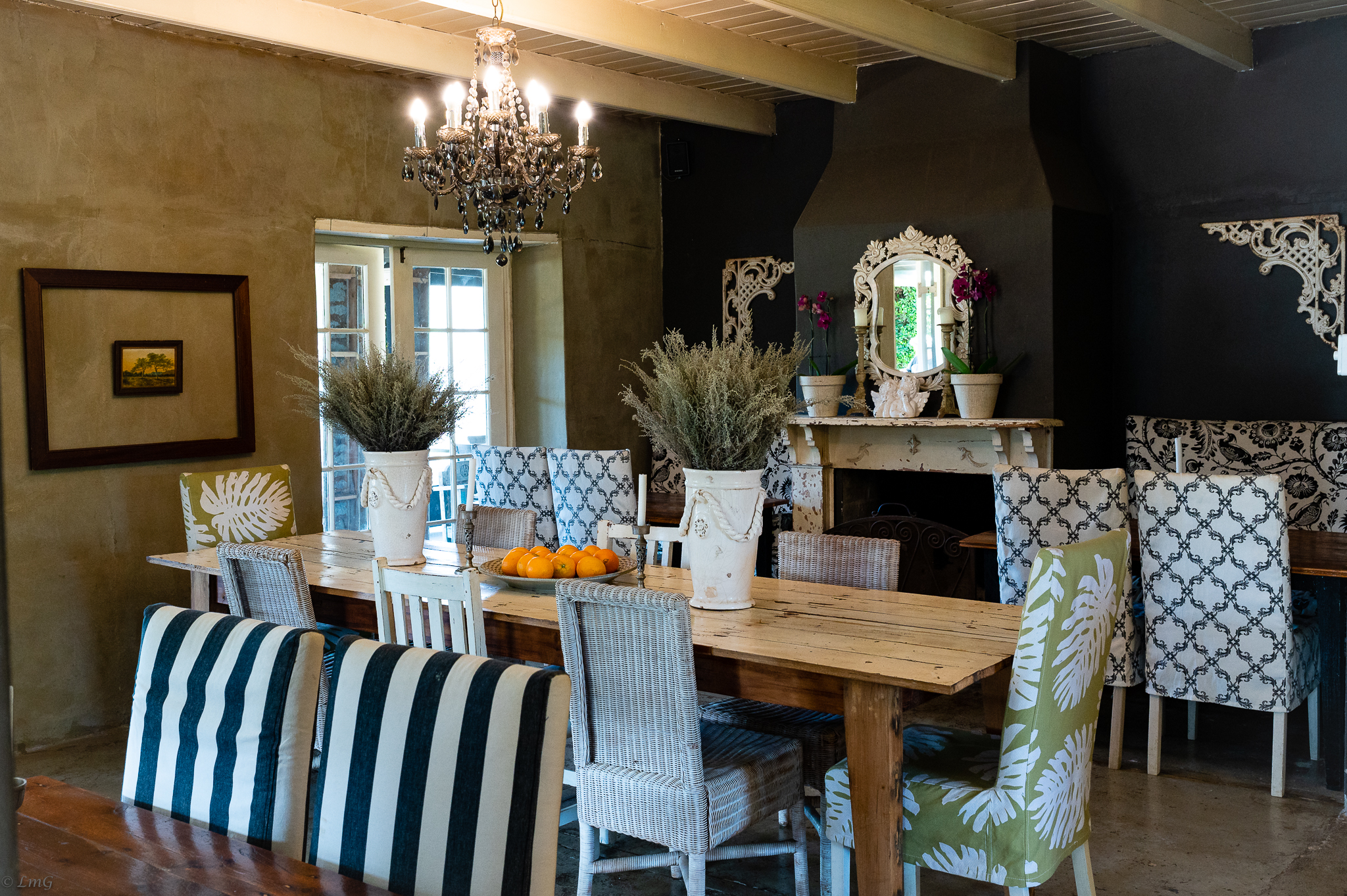 Possibly a combination of interior room spaces and still life (dried heathers and fresh citrus), a coffee shop in a small village on my travels last week-
